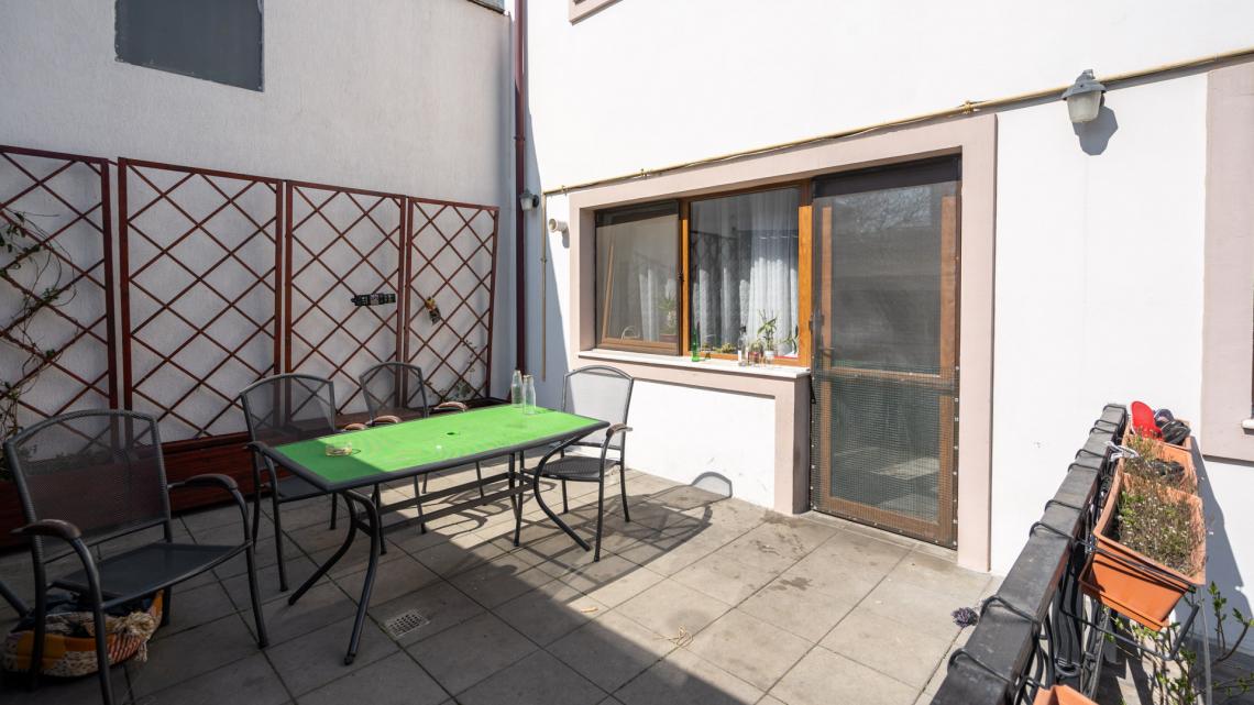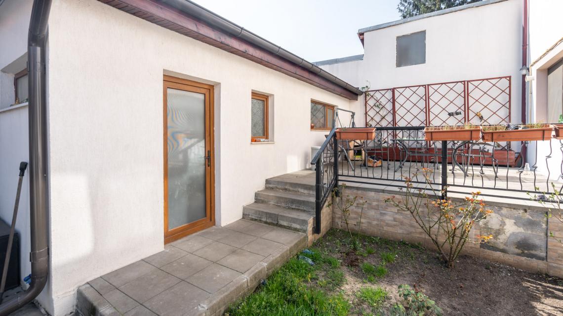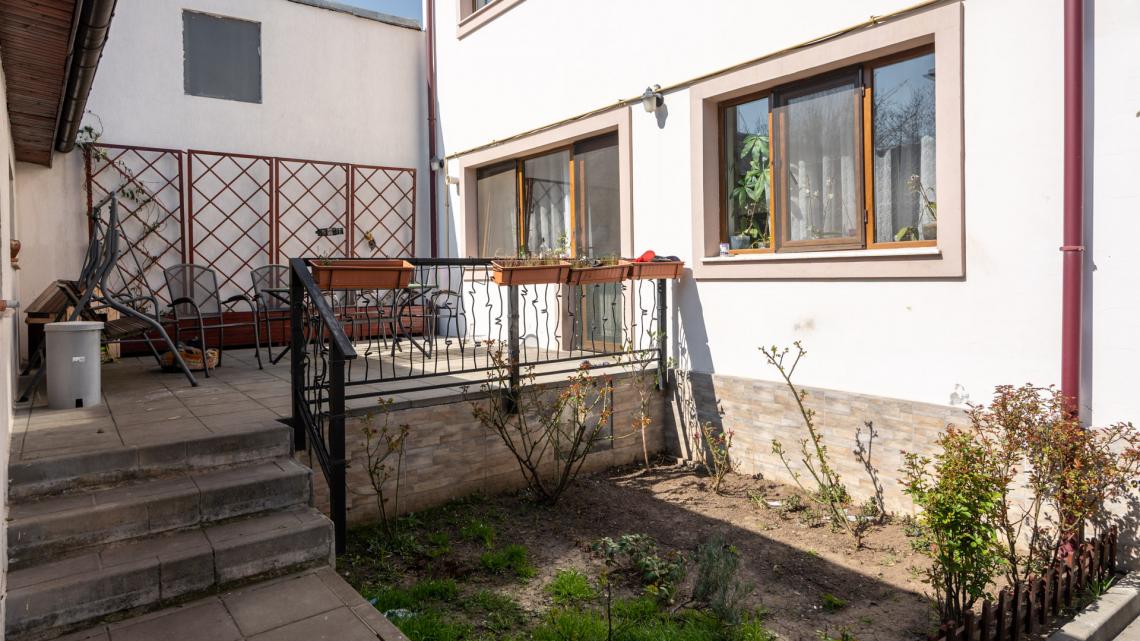 - teren 317 mp din care 120 mp sunt ocupati de constructia casei si scarile de acces, 30 mp de terasa din spatele casei, 60 mp de catre anexa (magazie) din spatele casei, iar curtea libera ramane de aproximativ 100 mp