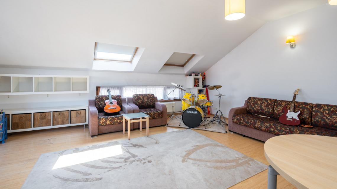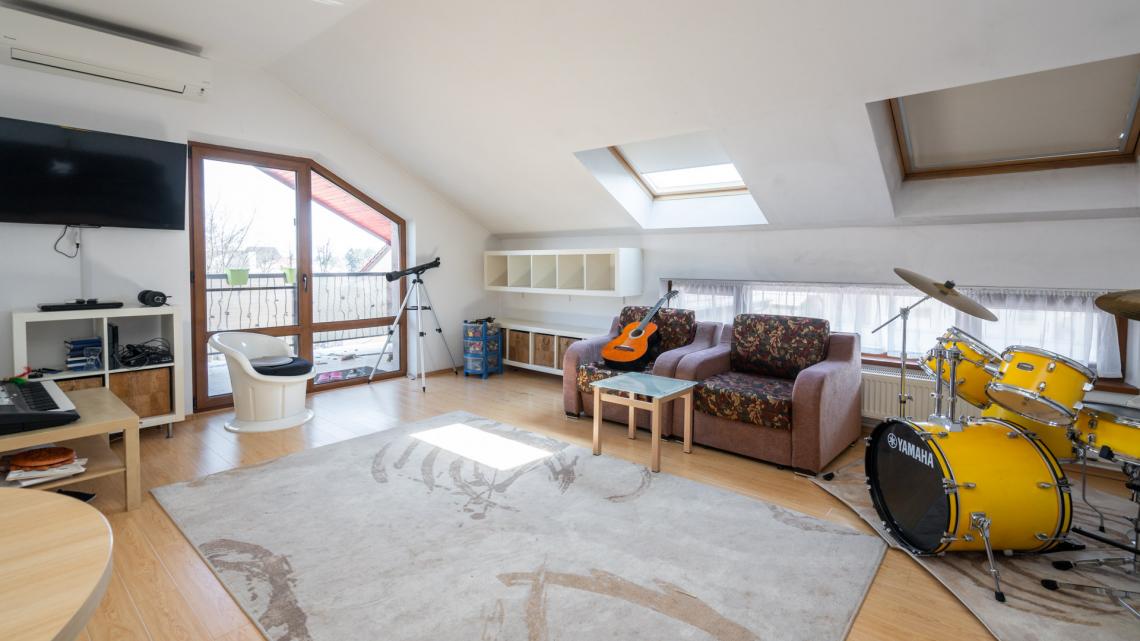 - mansarda este formata dintr-un dormitor, un spatiu deschis si o baie