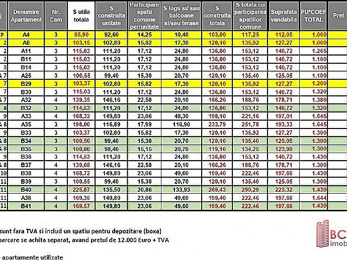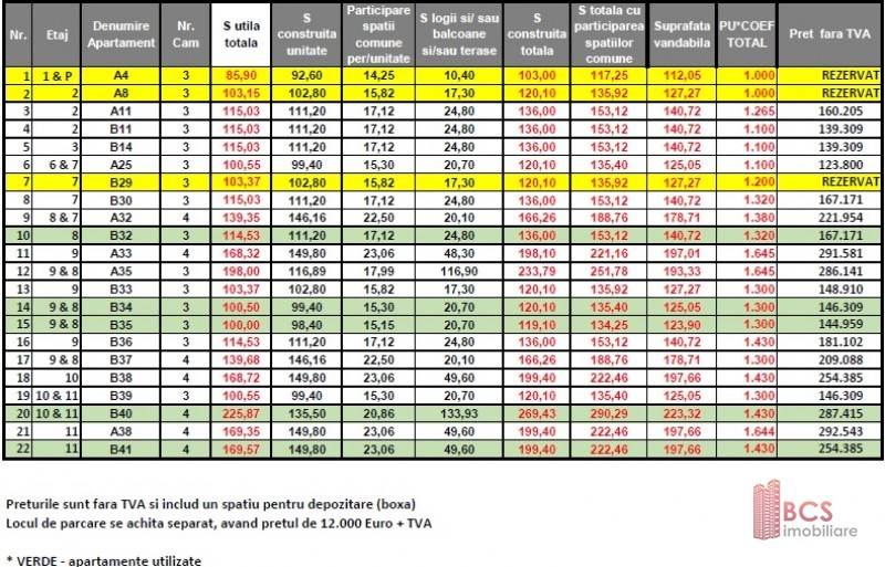 Pretul este fara TVA si include un spatiu pentru depozitare (boxa).