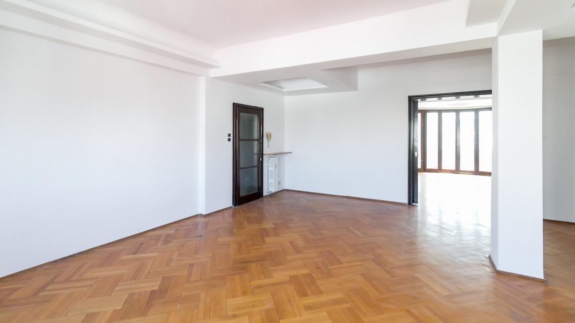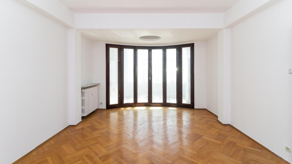 camera de zi in suprafata de aprox 40 mp cu orientare Nord, priveliste spre strada si acces in balcon, ce se poate prelungi prin glazvand; o camera de 25 mp cu veranda de 10mp avand vedere spre zona de vile si orientare Sud; 3 dormitoare (dintre care unul matrimonial de 21 mp cu acces in baie proprie si terasa); o baie de 8 mp si alte 2 grupuri sanitare; holuri, oficiu, camara, camera serviciu sunt spatii atat de necesare, pe care putine apartamente construite in vremuri mai noi nu le au.Apartamentul a fost partial renovat astfel: pardoseli originale reconditionate din mozaic in holuri si lemn masiv in camere; tamplarie exterior din PVC cu geam termopan; tamplarie interior din lemn masiv reconditionata; usa de intrare din lemn cu decoruri metalice.