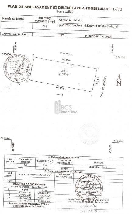 Teren de vanzare 2166 mp format din 3 loturi alaturate de 722 mp/lot in Bucuresti Sector 4 pe Drumul Dealu Corbului nr 33-35. Oportunitate pentru dezvoltatorii de locuinte colective.